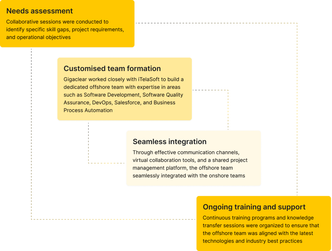 Gigaclear worked closely with iTelaSoft to build a dedicated offshore team with expertise in areas such as Software Development, Software Quality Assurance, DevOps, Salesforce, and Business Process Automation